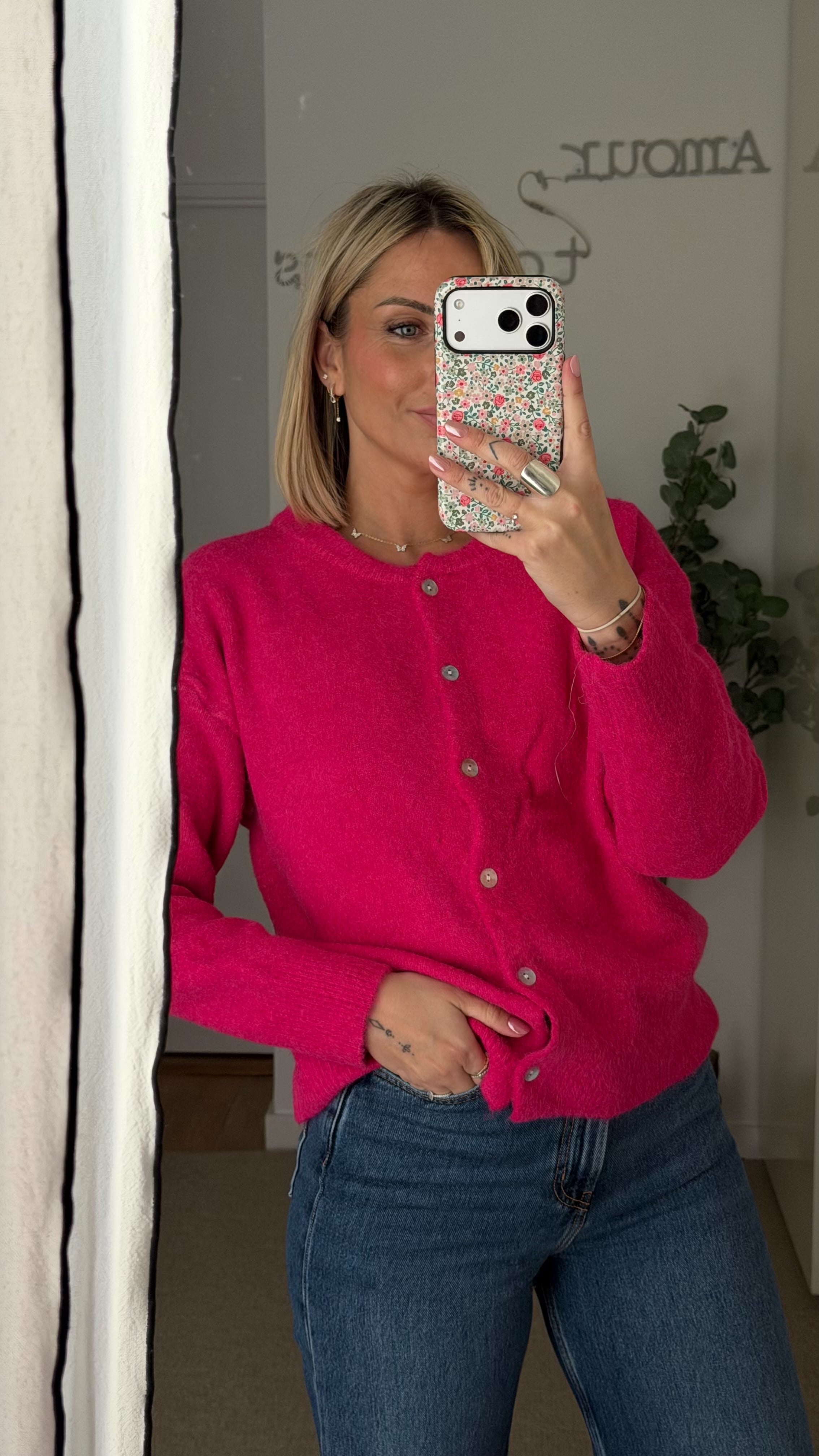 - Gilet en maille rose fuchsia pour illuminer vos tenues de saison.
